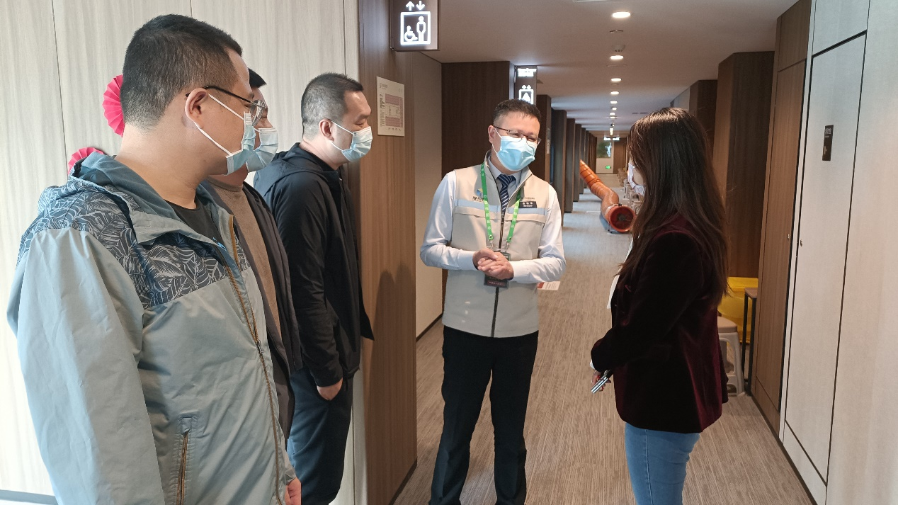 新年伊始,萬象更新。1月2日,深圳市人才集團(tuán)副總經(jīng)理張蕾、深圳市對(duì)外服務(wù)集團(tuán)總經(jīng)理侯亞敏在深圳灣業(yè)務(wù)部會(huì)展酒店項(xiàng)目組的陪同下,來到了灣區(qū)會(huì)展酒店參觀考察。在灣區(qū)會(huì)展酒店副總經(jīng)理佘利軍帶領(lǐng)下觀摩了“深圳灣區(qū)會(huì)展國際酒店首屆防疫工作技能大賽”及酒店大樓、洗衣房、食堂等設(shè)施。